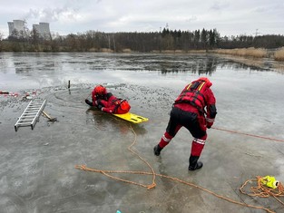 Aktuální oteplení zvyšuje riziko při pohybu na zamrzlých hladinách, kde led nepozorovaně slábne a zvyšuje se riziko jeho prolomení. Hasiči z Jaderné elektrárny Dukovany proto využili mrazivých dnů uplynulého týdne a zamrzlé hladiny rouchovanského rybníku a procvičovali správný postup při záchraně tonoucí osoby, pod kterou se prolomil led.