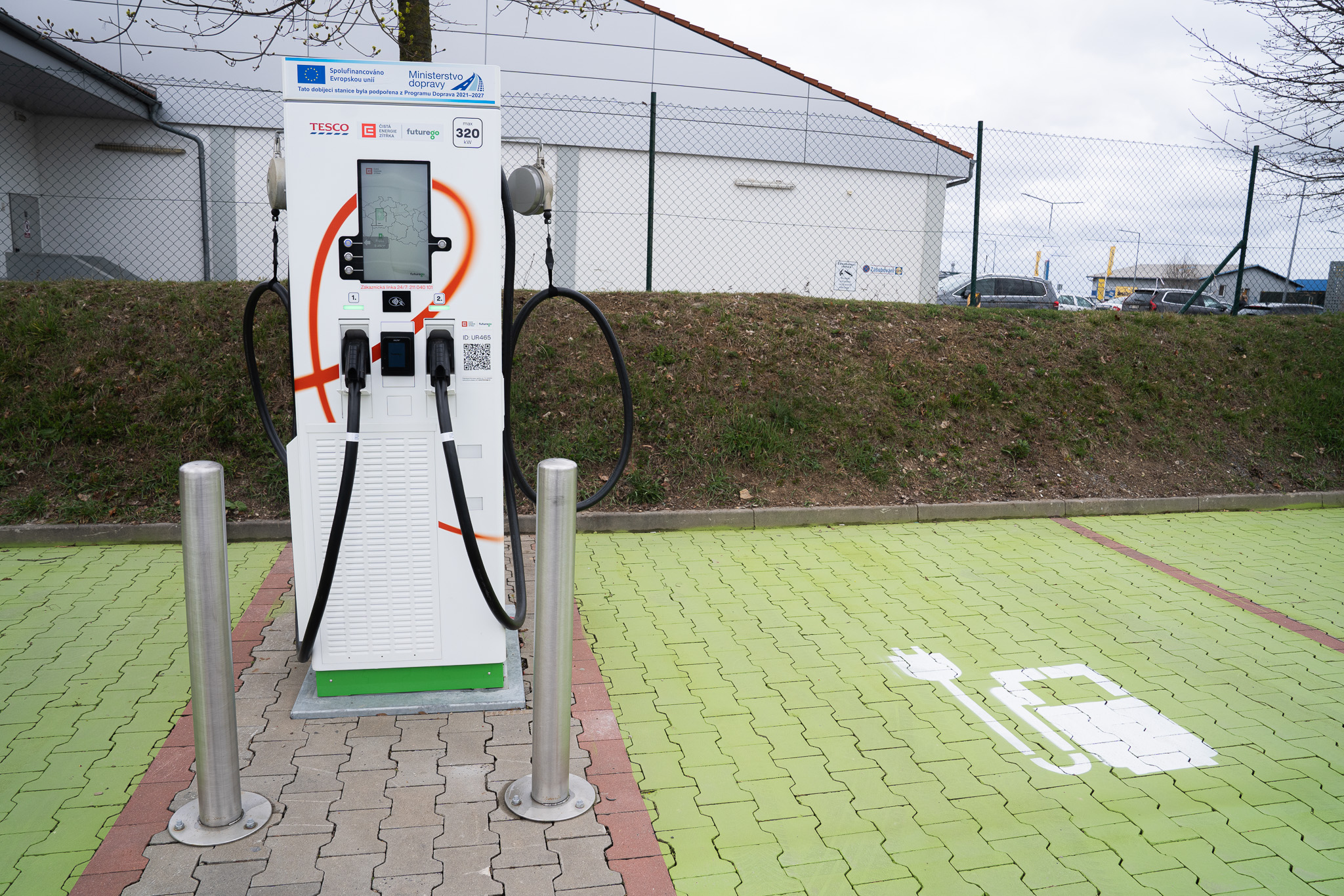 V rámci nového dobíjecího hubu u prodejny Tesco v Říčanech mají řidiči k dispozici 2 ultrarychlé stanice o výkonu 320 kW a 3 stanice o výkonu 200 kW.