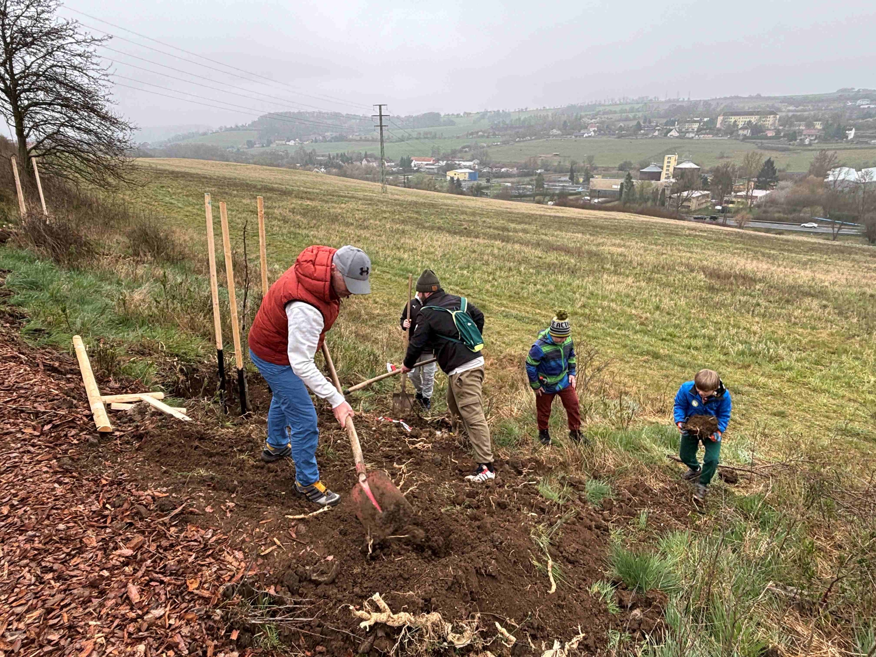 Obyvatelé Bystřan se pustili do výsadby nové ovocné aleje, díky přispění Nadace ČEZ vysadili během 1. etapy 35 nových stromů
